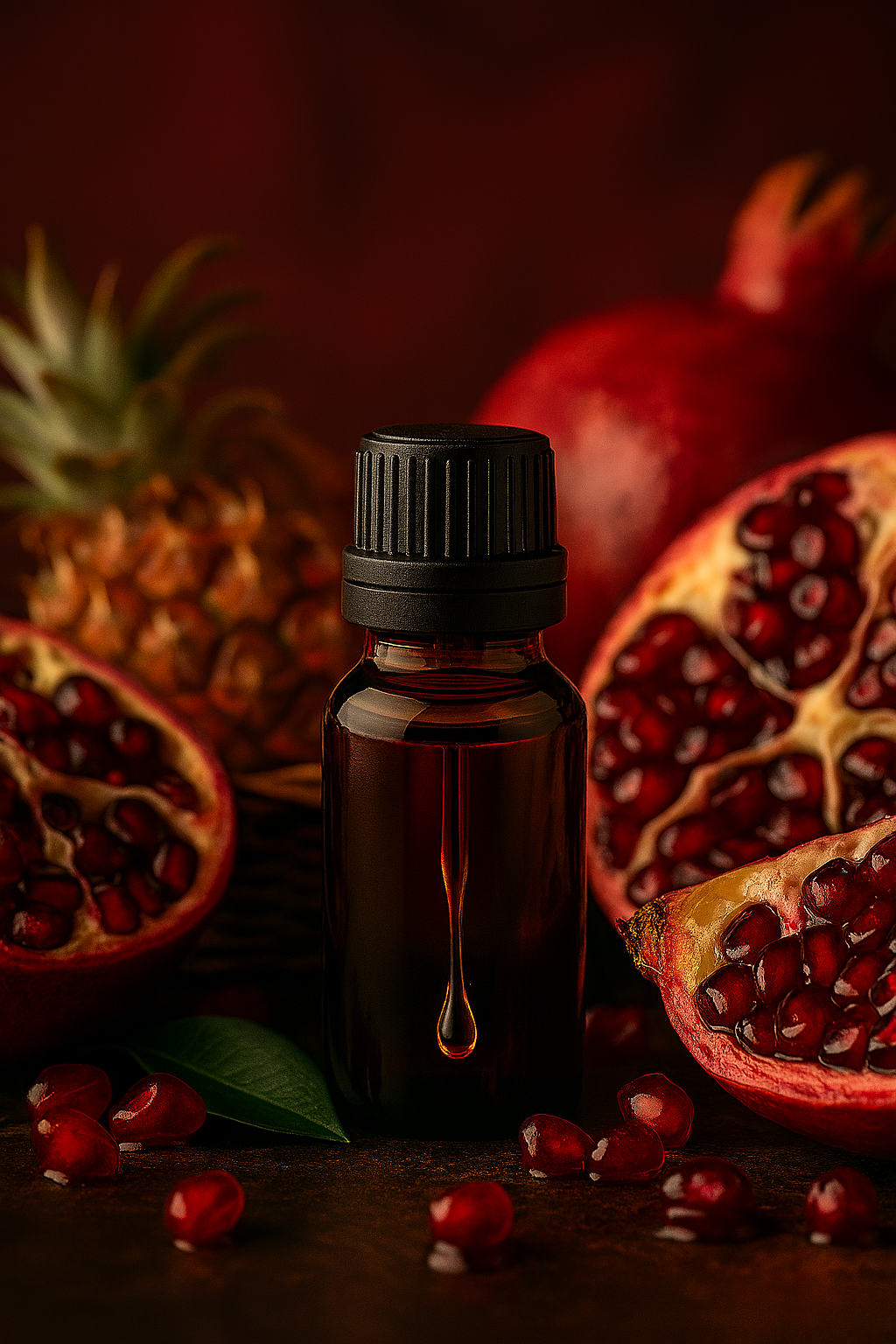 - Anti-âge profond : Riche en antioxydants (vitamine E, polyphénols, acide punicique), elle lutte contre les radicaux libres et stimule la régénération cellulaire.
